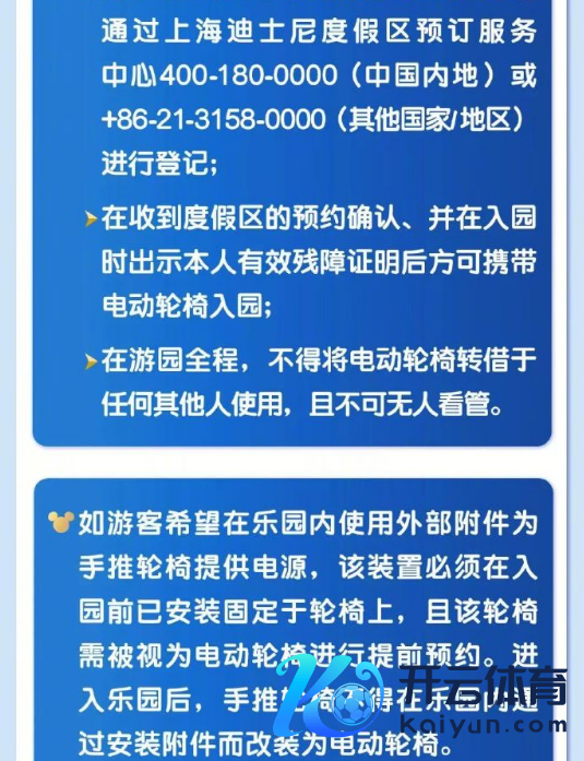 紫牛新闻记者可贵到,乐土至当天更新了《上海迪士尼乐土搭客须(以下简称“应知”)中关连手推轮椅知》及电动轮椅的轨则,并将对2024年12月10日起赶赴上海迪士尼乐土游玩的搭客庄重成效。其中指出,搭客不错持续佩带手推轮椅或电动轮椅干与上海迪士尼乐土,但仅限用于行径未便的东谈主士使用,不错说又一次明确了轮椅的使用鸿沟。同期,新规中明确,使用轮椅需在入园日2天前的20:00之前通过上海迪士尼度假区预订管事中心进行登记,在收到度假区的预约证明、并在入园时出示本东谈主灵验颓势证色泽方可佩带电动轮椅入园。在入园经由上进行了严格惩处。另外,新规中还明确了轮椅的结构圭臬、速率,并提到:在游园全程,不得将电动轮椅转借于任何其他东谈主使用,且不可无东谈主保管。记者可贵到,轨则中还暗示,手推轮椅不得在乐土中通过装配附件而窜改为电动轮椅。