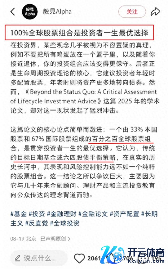 最近有篇名为《100%全球股票组合是投资者一世最优遴荐》的帖子在小红书火了。